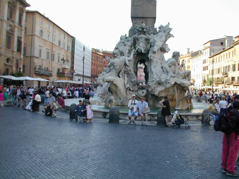 Mom & Joe at the Fontana dei Fiumi (Fountain of the Four Rivers) by Bernini in Piazza Navona in Rome.