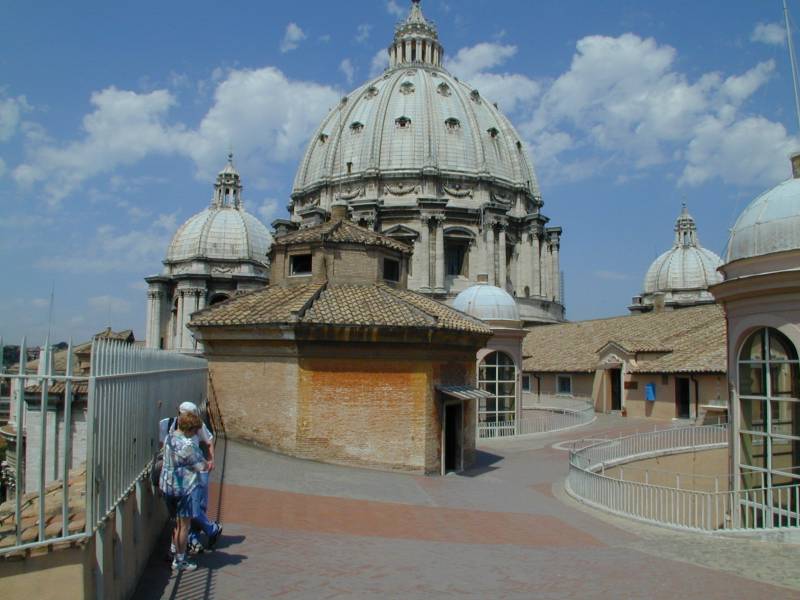 Joe & Mom on the roof of St. Peter's Cathedral in the Vatican in Rome. Joe climbed 168 steps, we took the elevator!