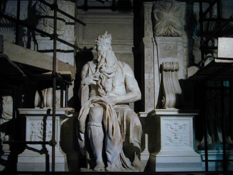 The marble statue of Moses by Michelangelo in the Church of St. Peter in Chains in Rome. Claimed by some art experts as Michelangelo's finest work.