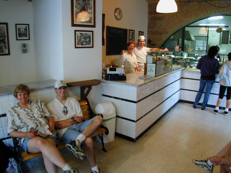 Mom & Joe in a terrific Bar (sandwich shop), Mille Panini, near the Church of St. Peter in Chains in Rome.