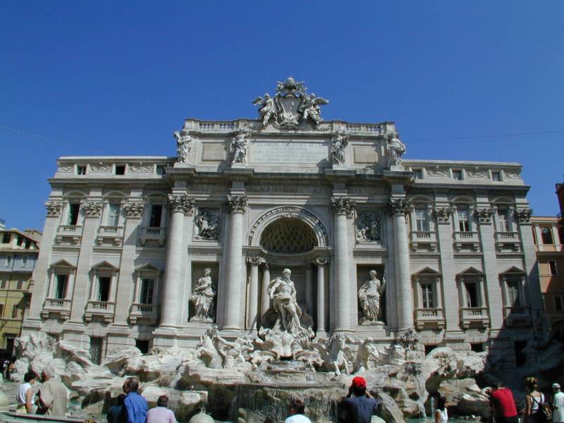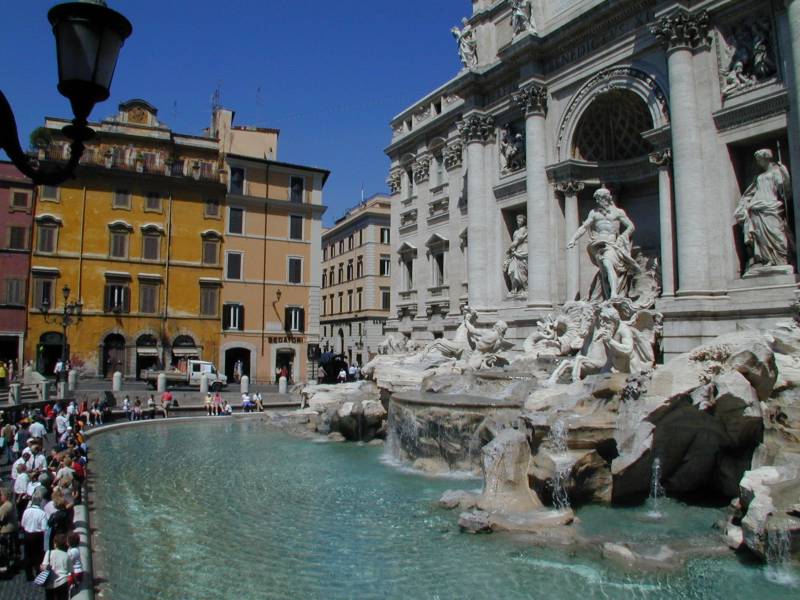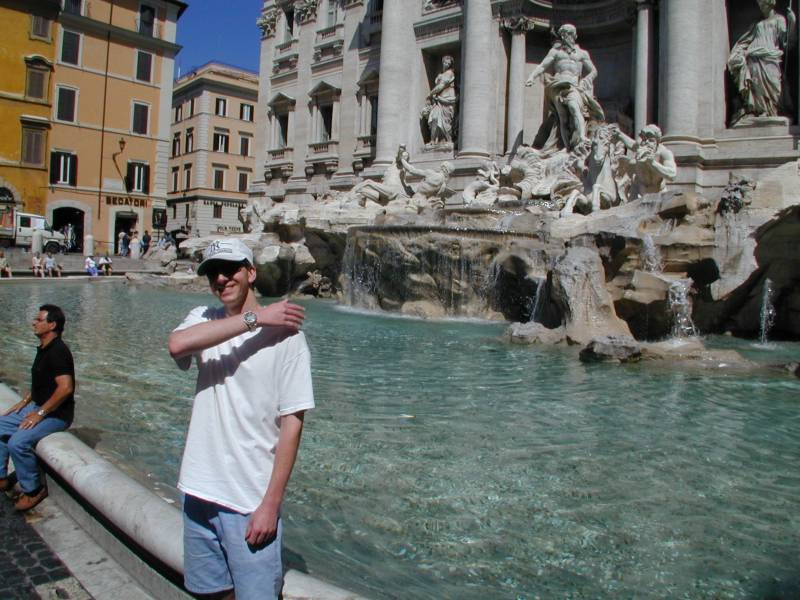 Joe tossing a coin into the famous Trevi Fountain in Rome.