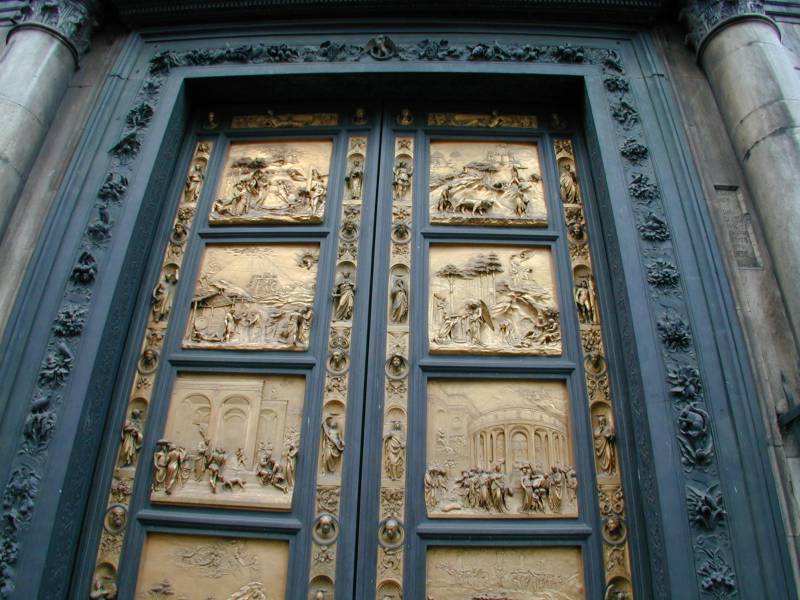The "golden" doors of the Baptistry of the Duomo Santa Maria del Fiore (Cathedral of St. Mary of the Flowers) in Florence.