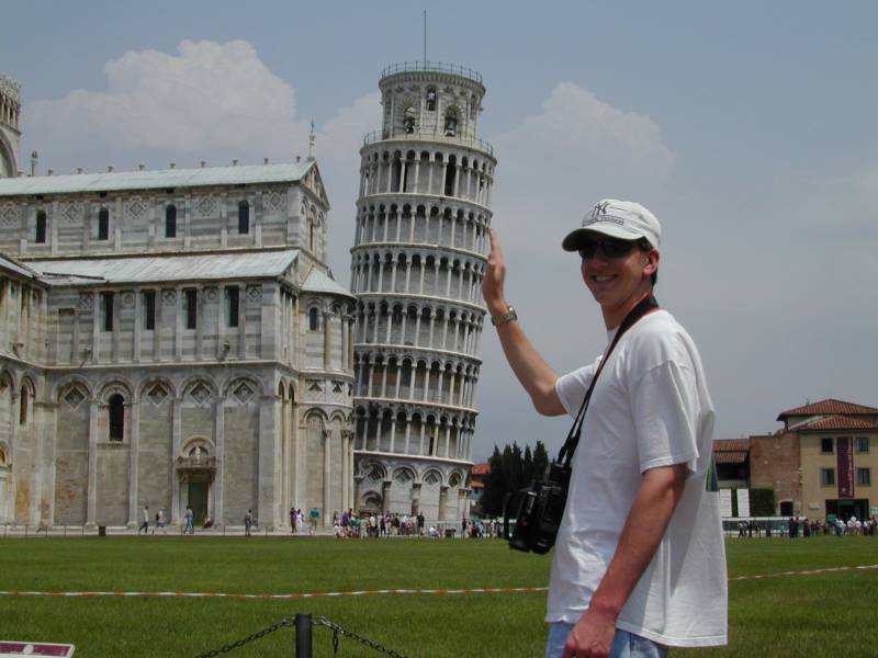 Joe trying to straighten up the Leaning Tower of Pisa.