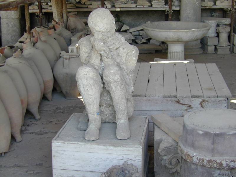 The plaster cast of a Pompeiian man taken from a cavity left by the decayed body in the solidified ash of the Vesuvius eruption in 79 AD.