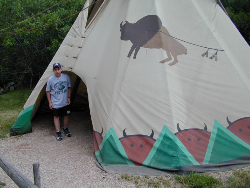2000/7/13 - RJ in a teepee at The Flying W Ranch before our chuckwagon dinner and show.