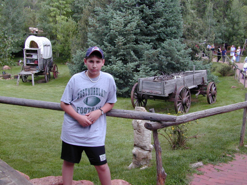 2000/7/13 - RJ at The Flying W Ranch with some real chuckwagons in the background.
