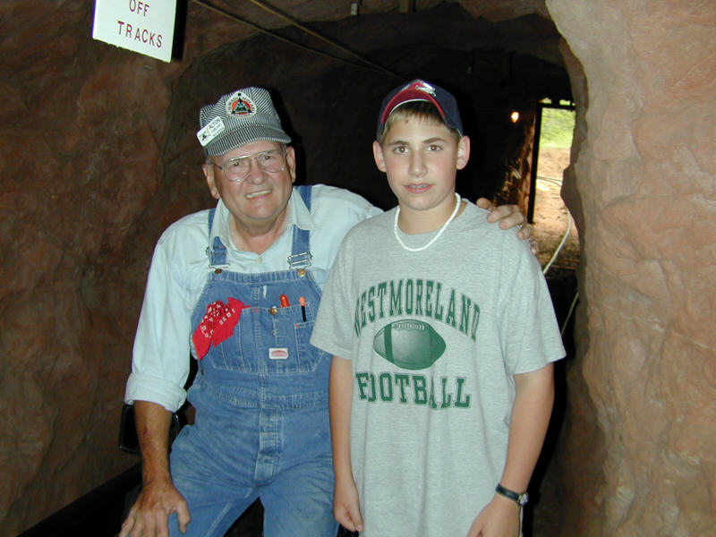 2000/7/13 - RJ at The Flying W Ranch with the engineer of the small mining train.