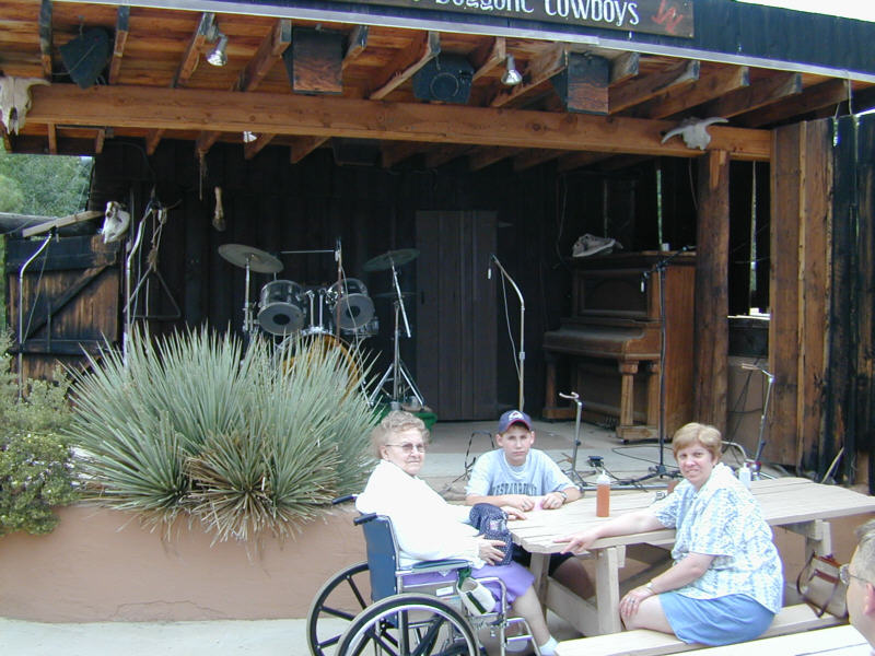 2000/7/13 - Grandma, RJ, and Mom at our dinner table right in front of the stage at The Flying W Ranch just before our chuckwagon dinner.