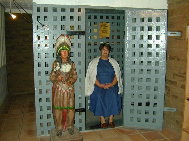 2000/9/26 - Lorraine in "jail" at Flying W Ranch before our chuckwagon dinner and jamboree show.