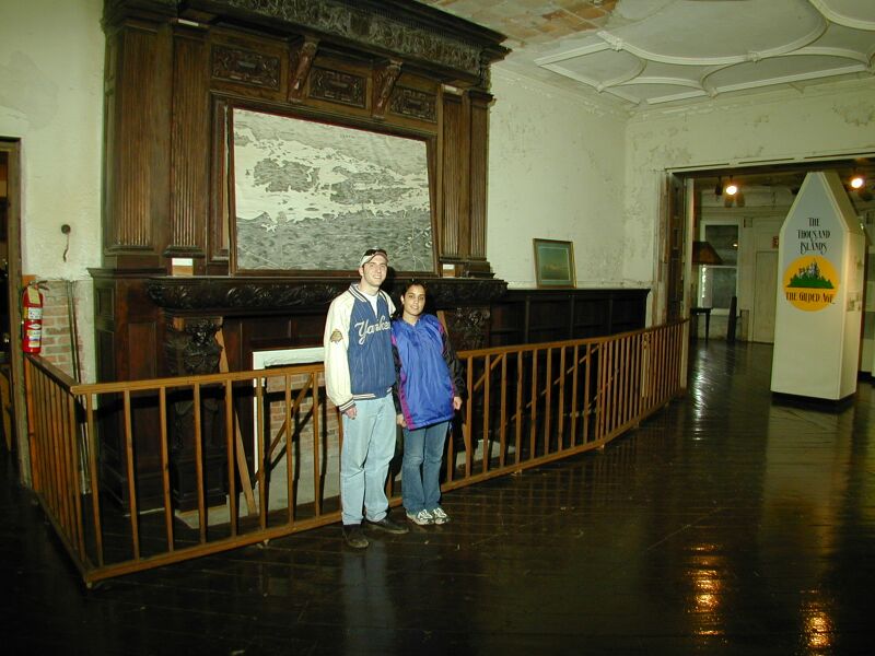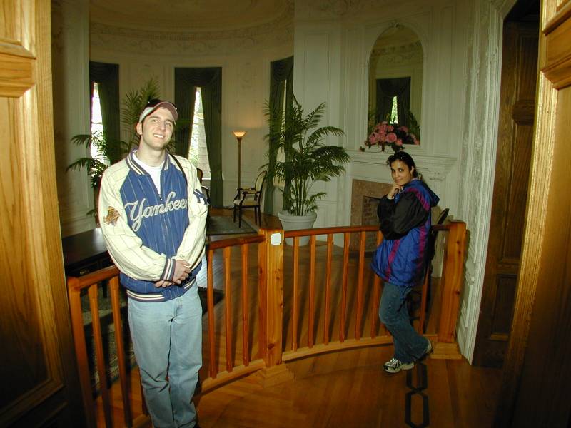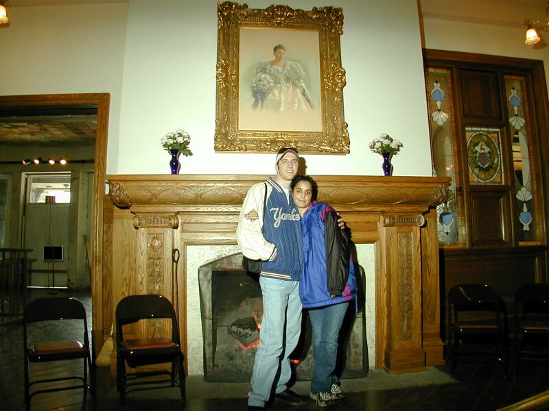 2001/5/28 - Joe and Jen in front of the fireplace and a portrait of Louise Boldt at the foot of the grand staircase inside Boldt Castle on Heart Island on the St. Lawrence River.
