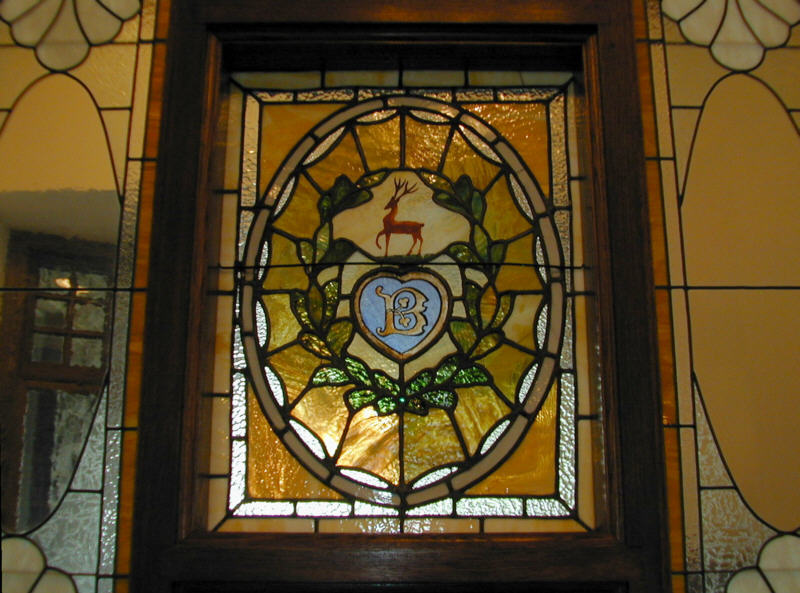 2001/5/28 - A stained glass window showing the Boldt coat of arms inside Boldt Castle on Heart Island on the St. Lawrence River.