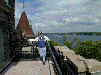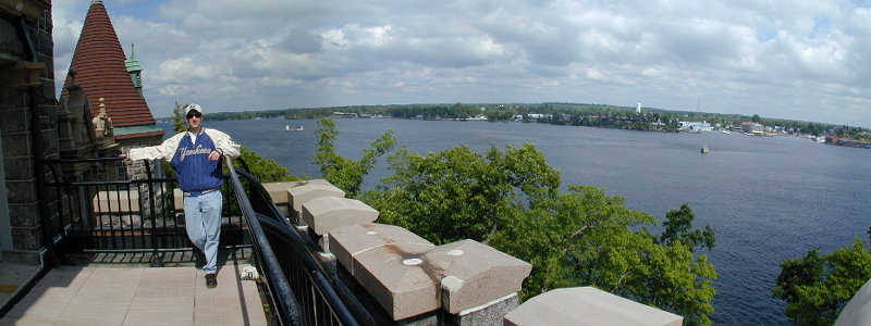 2001/5/28 - A panoramic of Joe on the 4th floor Observation Deck of Boldt Castle on Heart Island overlooking the St. Lawrence River.