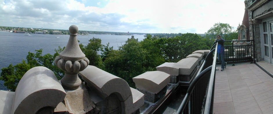 2001/5/28 - A Panoramic view with Jen on the 4th floor Observation Deck of Boldt Castle on Heart Island overlooking the St. Lawrence River.