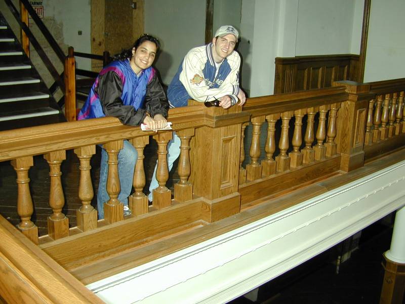 2001/5/28 - Jen & Joe looking down over the restored oak railing on the 3rd floor of Boldt Castle on Heart Island on the St. Lawrence River.