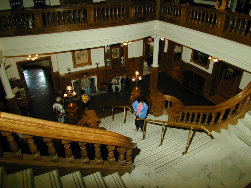 2001/5/28 - A view looking down the grand staircase (Al and Joan seated on the right) inside Boldt Castle on Heart Island on the St. Lawrence River.