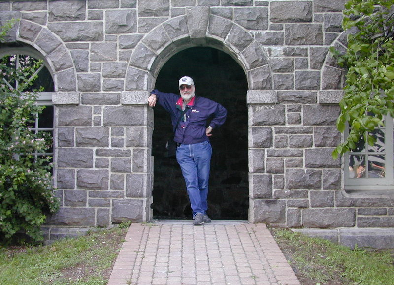 2001/5/28 - Dad standing in an archway in the underground tunnel passageway of Boldt Castle.