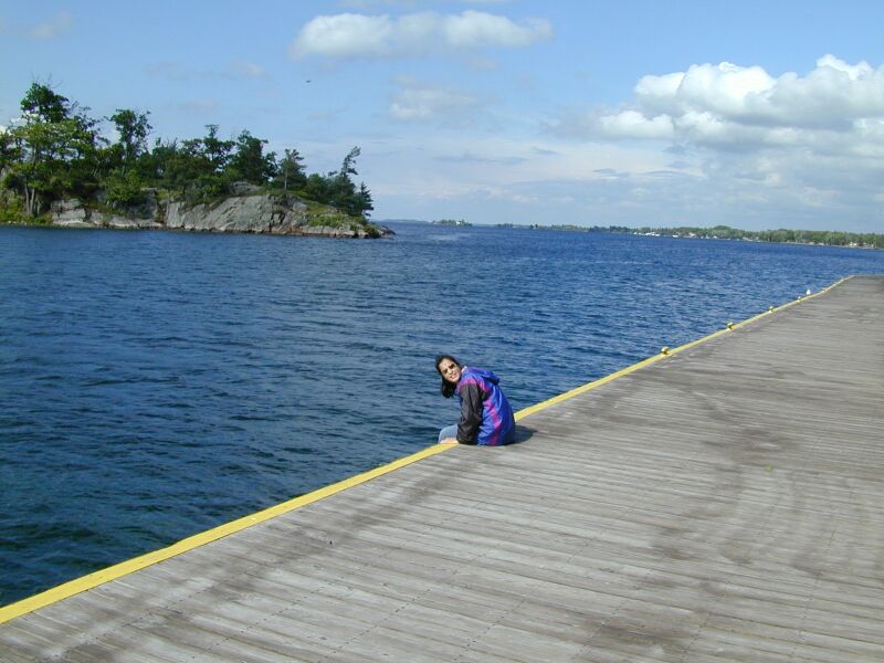 2001/5/28 - Jen sitting on "the dock of the bay" at Boldt Castle on Heart Island overlooking the St. Lawrence River.