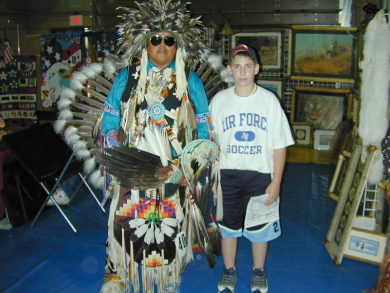 2000/7/15 - RJ with a Native American dancer at the 30th Annual Lone Feather Council Pow Wow in the field house at Fort Carson in Colorado Springs.